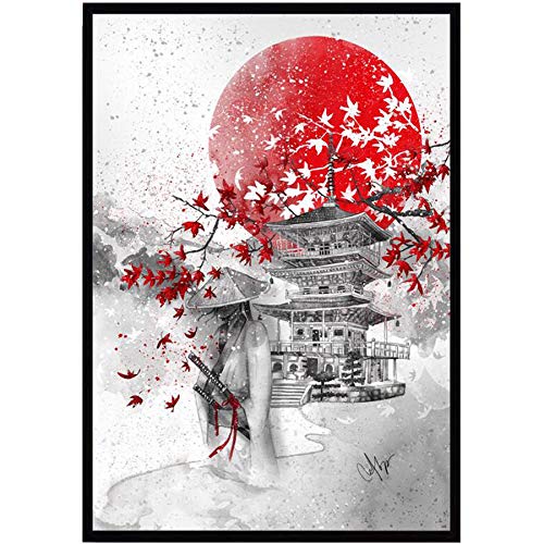 Bushido giapponese Sakura Samurai Pittura diamante Rotondo/Trapano quadrato Mosaico Puzzle Immagine di strass Kit Pittura murale,60x80cm