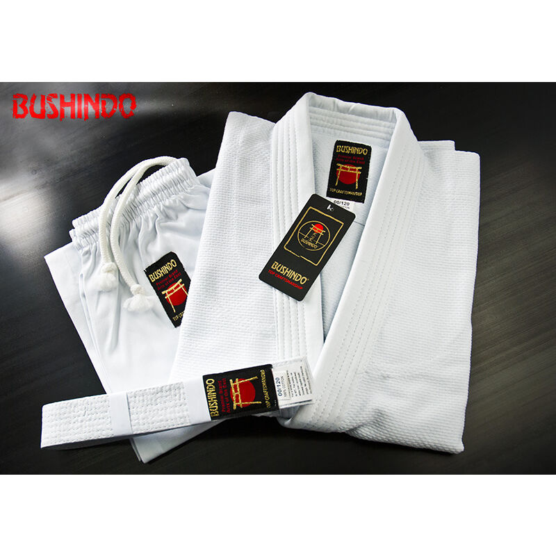 Tuta da judo resistente, ben realizzata e completa. La felpa è realizzata secondo gli standard da cavi spessi con colletto fisso. Resistente alla trazione e allo strappo. Pantaloni comodi con elastico e coulisse in vita per regolare facilmente la taglia. Cintura bianca inclusa. Versione standard Materiale: 100% cotone;