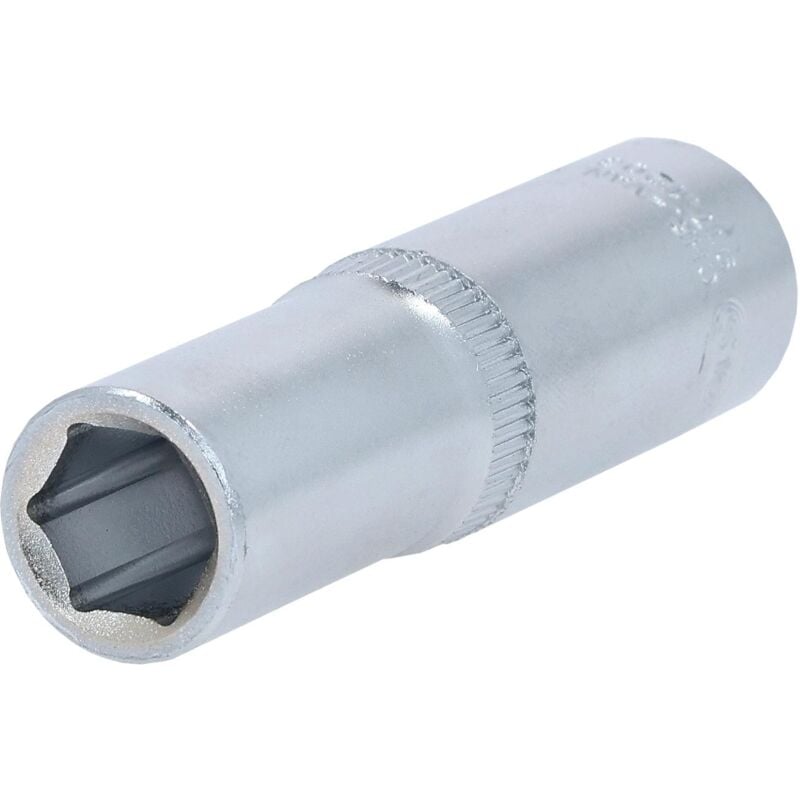 Esagonale Profilo FlankTraction A norma DIN 3124 / ISO 2725 Quadro femmina a norma DIN 3120 / ISO 1174 con sede per sfera di tenuta Finitura lunga Per utilizzo manuale Cromata opaca Cromo-vanadio Azionamento quadro in pollici 1/2 Lunghezza totale L in mm 76.0 Standard DIN 3120, ISO 1174, DIN 3124, ISO 2725 Larghezza tra le piastre in pollici 1/2 Profondità T in mm 13.0 Profilo 1 Flank Traction Diametro D1 19.0 Peso del tessuto 120 Diametro D2 19.0 Dimensioni dell'imballaggio 1 Materiale1 Feinster Chrom Vanadium Stahl, matt satiniert verchromt