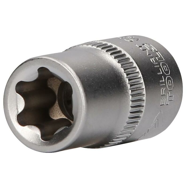 Fabbricato secondo DIN 3120 Attacco quadro femmina 1/2“ (12,5 mm) In acciaio cromo vanadio di qualità per una durata particolarmente elevata Con cromatura opaca Profilo E Torx E16 La bussola E Torx BT022844 di BRILLIANT TOOLS è adatta al serrare e allentare in modo semplice viti con attacco Torx E. L'inserto metrico corto ha un attacco quadro femmina da 1/2 (12,5 mm), fabbricato secondo DIN 3120. L'apertura della chiave è E16. La bussola ha una lunghezza complessiva di 38 mm. La superficie è cromata opaca sul lato dell'attacco e sul lato dell'esagono incassato, che è separato da una zigrinatura longitudinale. LA NOSTRA QUALITÀ: BRILLANTE I NOSTRI PREZZI: SMART Ogni utensile cela più di un quarto di secolo di esperienza dei nostri tecnici. La qualità senza compromessi dei nostri eccellenti utensili professionali di prima qualità per le difficili operazioni quotidiane è una delle ricette del nostro successo. Facciamo a meno di una complessa struttura di distribuzione e di stravaganti