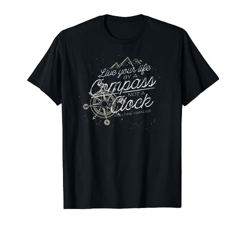 Fulltime Families Live Your Life By A Compass Not A Clock Design sottile finitura invecchiata, inchiostro morbido al tatto, ottimo regalo per camper di prima classe, viaggi, famiglia, che amano campeggio, viaggi, avventura