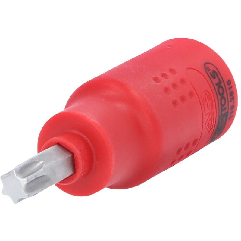 Torx Con rivestimento isolante a norma IEC 60900 Attacco quadro femmina a norma DIN 3120 / ISO 1174 con sede per sfera di tenuta Brunito Cromo-vanadio Azionamento quadro in pollici 3/8 Lunghezza totale L in mm 60 Dimensione profilo in TORX T40 Profilo 1 Torx Peso del tessuto 40 Dimensioni dell'imballaggio 1 Materiale1 Feinster Chrom Vanadium Stahl