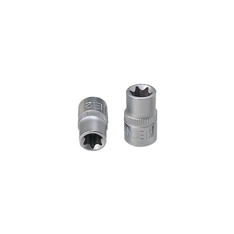 Torx profilo E Attacco quadro femmina a norma DIN 3120 / ISO 1174 con sede per sfera di tenuta Per utilizzo manuale Cromata opaca Cromo-vanadio Dimensione della chiave in E-TORX E8 Azionamento quadro in pollici 3/8 Lunghezza totale L in mm 28.0 Standard DIN 3120, ISO 1174 Profondità T in mm 6.0 Profilo 1 E-TORX® Diametro D1 11.0 Peso del tessuto 25 Diametro D2 18.0 Dimensioni dell'imballaggio 1 Materiale1 Feinster Chrom Vanadium Stahl, matt satiniert verchromt Forma gerändelt