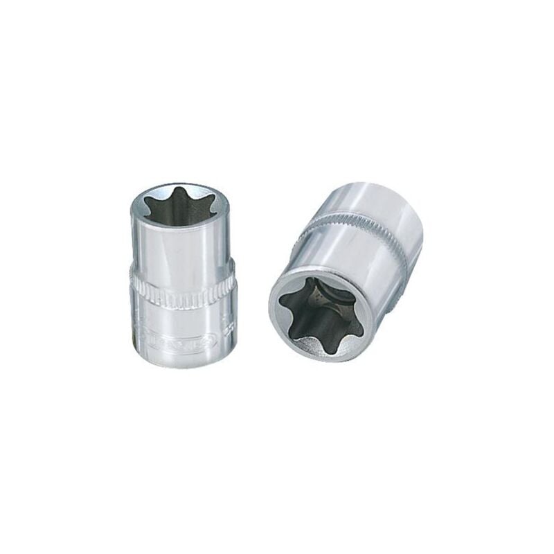 Torx profilo E Attacco quadro femmina a norma DIN 3120 / ISO 1174 con sede per sfera di tenuta Per utilizzo manuale Cromate lucide Cromo-vanadio Dimensione della chiave in E-TORX E10 Azionamento quadro in pollici 1/4 Lunghezza totale L in mm 25 Standard DIN 3120, ISO 1174 Profondità T in mm 7 Profilo 1 E-TORX® Diametro D1 13 Peso del tessuto 15 Diametro D2 13 Dimensioni dell'imballaggio 1 Materiale1 Feinster Chrom Vanadium Stahl, hochglanz verchromt Forma gerändelt