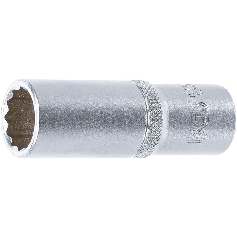 Con zigrinatura. Materiale: acciaio al cromo vanadio. Apertura chiave: 18 mm. Peso lordo: 150 g. Profilo di estrazione: a 12 lati. Profilo di azionamento: quadrato interno. Rivestimento della superficie: cromata, opaca. Dimensioni profilo di azionamento: 12,5 mm. Dimensione del profilo di azionamento, imperiale: 1/2.
