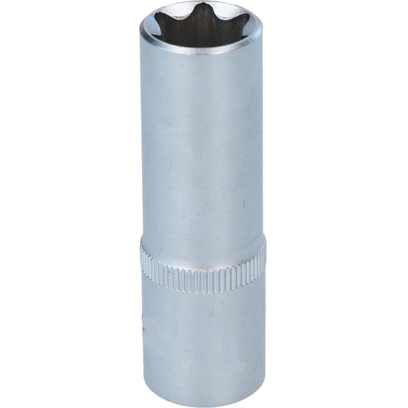 Torx profilo E Attacco quadro femmina a norma DIN 3120 / ISO 1174 con sede per sfera di tenuta Per utilizzo manuale Cromata opaca Cromo-vanadio Dimensione della chiave in E-TORX E7 Azionamento quadro in pollici 3/8 Lunghezza totale L in mm 63 Standard DIN 3120, ISO 1174 Profondità T in mm 21 Profilo 1 E-TORX® Diametro D1 13 Peso del tessuto 50 Diametro D2 17 Dimensioni dell'imballaggio 1 Materiale1 Feinster Chrom Vanadium Stahl, matt satiniert verchromt