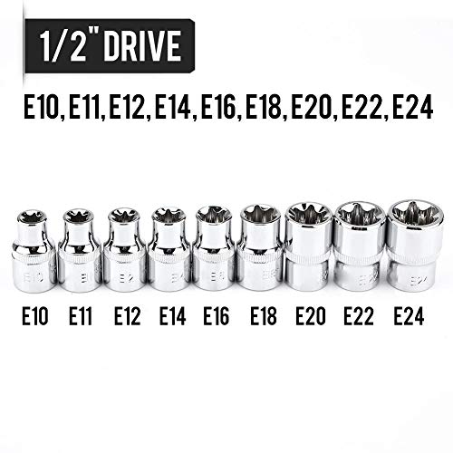 Set di bussole Torx Star Bit, 9Pcs 1/2 "Drive E-Type Torx Star Bit Set di bussole E10-E24 Kit di strumenti di riparazione