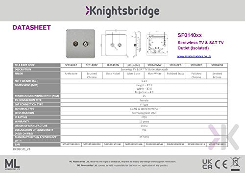 Knightsbridge SF0140PC Screwless TV and Satellite TV Outlet - Polished Chrome
