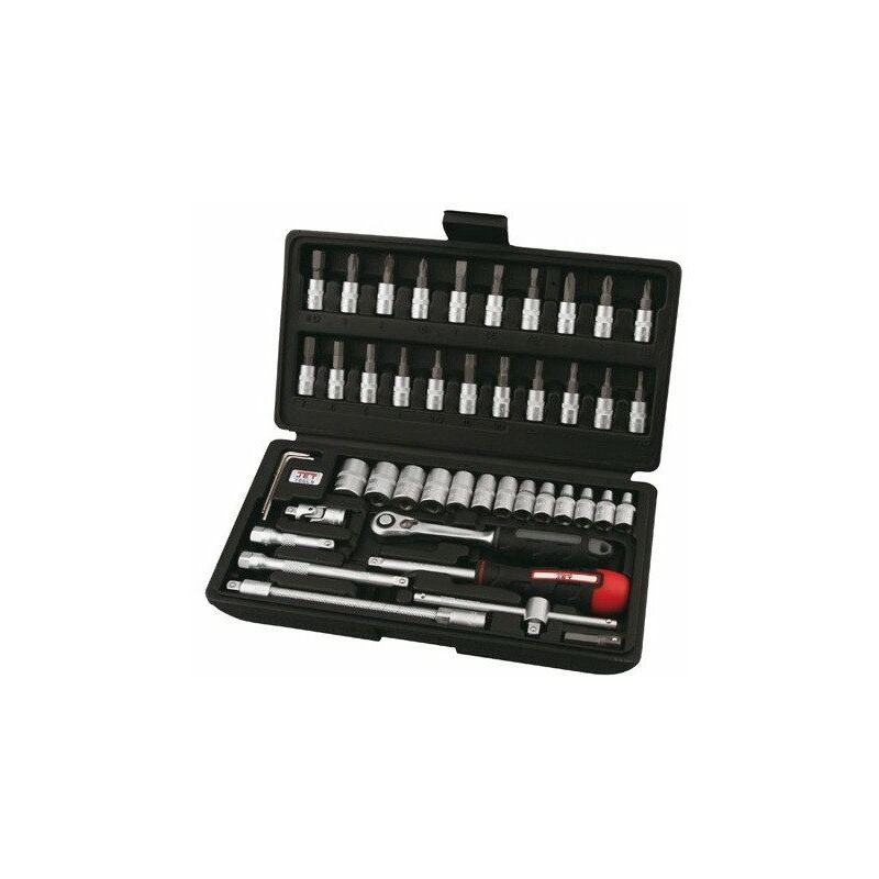 Promac - Set di bussole 46 pezzi - X_546B Set di chiavi a bussola 1/4, 46 pezzi in custodia di PVC - Set di utensili, indispensabile in ogni officina, carrello di servizio ecc., con 46 utensili di alta qualità - Custodia in plastica solida con una presa salda sugli strumenti, ma facile da rimuovere e riporre - Contenuto versatile con ciotole da ¼ per una varietà di usi - Rastrello a 60 denti di alta qualità, sottile ma robusto - Ingombro LxPxH 250 x 120 x 45 mm - Peso 1,2 kg Scatola contenente: - Manico a cricchetto reversibile da 1/4 (45 denti) - 1/4 bussole: 4-4.5-5-5.5-6-7-8-9-10-11-12-13-14 mm - Punte esagonali da 1/4: 3 - 4 - 5 - 6 - 7 - 8 mm - Bit per cacciaviti piatti 1/4: 4 - 5,5 - 7 mm - Bit con testa a croce 1/4: PH1 - PH2 - PH3 - Bit Pozidrive 1/4: PZ1 - PZ2 - PZ3 - Bit 1/4 Torx: TX 10 - TX 15 - TX 20 - TX 25 - TX 30 - TX 40 - 1/4 manico del cacciavite - Estensione 1/4: 50 - 100 mm - 1/4 T scorrevole - 1/4 tubo flessibile - Adattatore: Hex 6,35M / 1/4 M (25mm) - 1/4 testa a