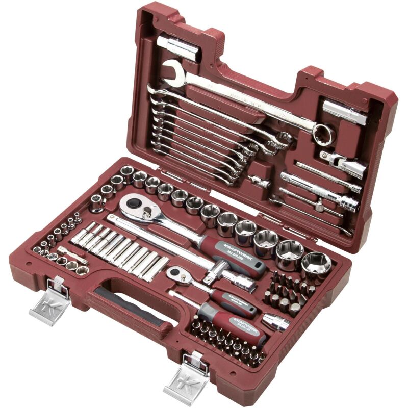 Dettagli: Cricchetti reversibili 1/4'+1/2', 72 denti Prese da 1/4' da 4 a 13 mm Bussole da 1/2' da 10 a 32 mm Chiavi combinate da 8 a 22 m 32 mm - Chiavi combinate da 8 a 22 m Dimensioni: 410 x 265 x 80 mm Peso: 6,6 kg