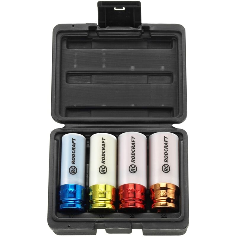 Prese Rodcraft G1/2 da 17 a 22 mm antigraffio - Modello RS414WP - per cerchi in lega per auto e dadi lucidi con rivestimento in plastica, a parete extra sottile Fornite in una valigetta da 4 pezzi composto da: SW 17, 19, 21, 22 mm