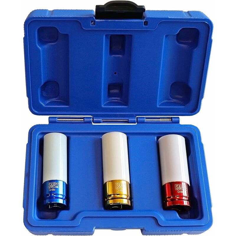 Materiale: acciaio al cromo vanadio Prese a muro sottili per l'uso su cerchi in lega. Con rivestimento in plastica per proteggere i tuoi cerchi in lega Adatto per avvitatori pneumatici e avvitatori a percussione È la scelta ideale del professionista, la gamma è così vasta da coprire un'ampia gamma di mercati e applicazioni Descrizione del prodotto: Prese a muro sottili per l'uso su cerchi in lega. Prese a muro sottili per l'uso su cerchi in lega. Il rivestimento in nylon resistente all'esterno delle prese previene scheggiature e graffi all'interno dei fori dei dadi ruota Dati tecnici: Materiale: acciaio al cromo vanadio Quantità: 3 pezzi Misure: 17mm, 19mm e 21mm. Adatto a qualsiasi cricchetto/barra da 1/2". Resistenza alla corrosione: materiale rinforzato, temprato e anodizzato . La confezione contiene: 1 x 3 bussole a impulsi ladacèe