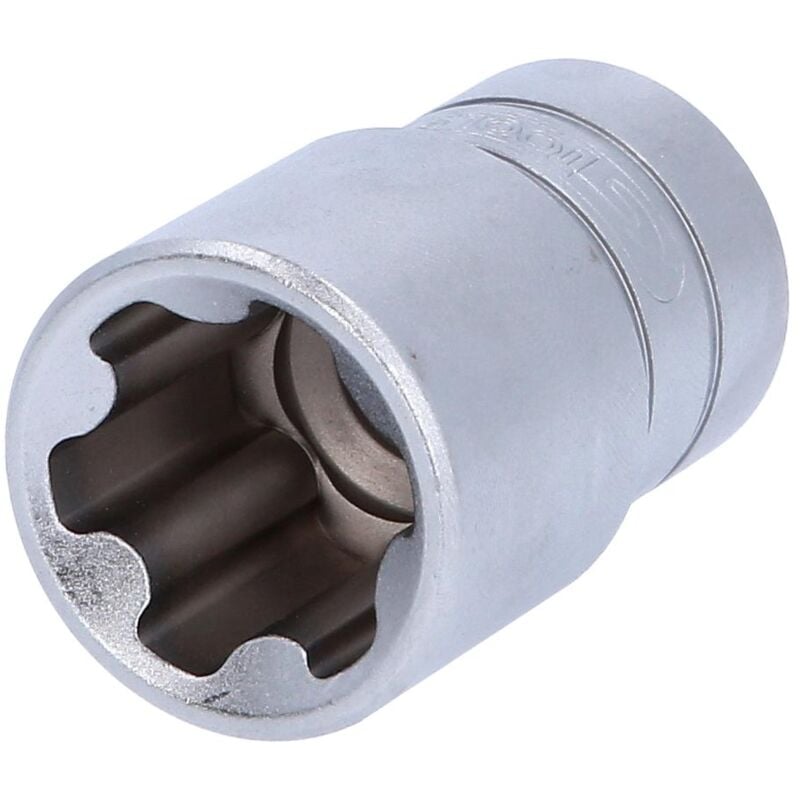 Torx-E-Plus (EPL) Attacco quadro femmina a norma DIN 3120 / ISO 1174 con sede per sfera di tenuta Per utilizzo manuale Cromata opaca Cromo-vanadio Dimensione della chiave in E-TORX EPL 26 Azionamento quadro in pollici 1/2 Lunghezza totale L in mm 45.0 Standard ISO 1174, DIN 3120 Profondità T in mm 22.0 Profilo 1 Torx-E-Plus (EPL) Diametro D1 30.0 Peso del tessuto 124 Diametro D2 26.0 Dimensioni dell'imballaggio 1 Materiale1 Feinster Chrom Vanadium Stahl, matt satiniert verchromt