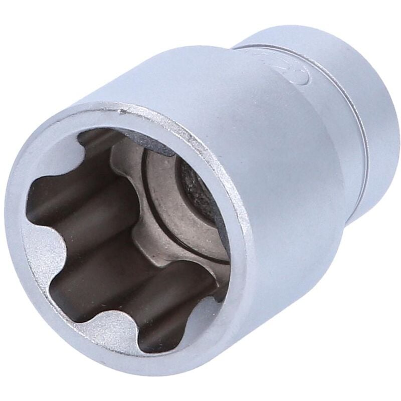 Torx-E-Plus (EPL) Attacco quadro femmina a norma DIN 3120 / ISO 1174 con sede per sfera di tenuta Per utilizzo manuale Cromata opaca Cromo-vanadio Dimensione della chiave in E-TORX EPL 30 Azionamento quadro in pollici 1/2 Lunghezza totale L in mm 45.0 Standard ISO 1174, DIN 3120 Profondità T in mm 23.0 Profilo 1 Torx-E-Plus (EPL) Diametro D1 34.0 Peso del tessuto 138 Diametro D2 26.0 Dimensioni dell'imballaggio 1 Materiale1 Feinster Chrom Vanadium Stahl, matt satiniert verchromt