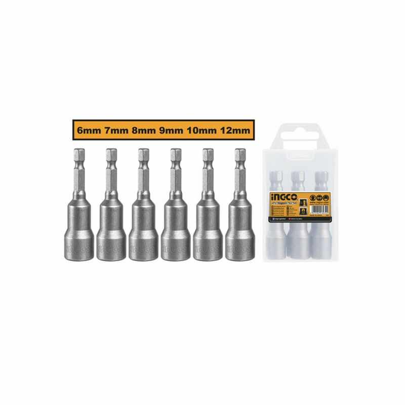 Set 6 bussolotti da 1/4” Attacco 1/4” HEX Lunghezza 65 mm Misure: 6 - 7 - 8 - 9 - 10 - 12