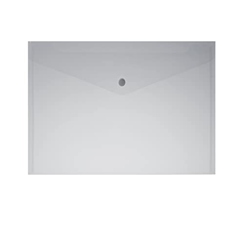 Busta con Bottone Formato cm 19x14, Portadocumenti in Polipropilene con Chiusura a Pressione, Colore Bianco, Confezione da 5 Pezzi