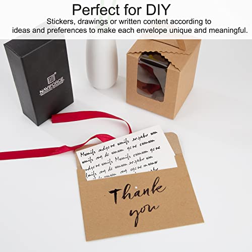 Materiale Premium: Buste di carta kraft marrone, spesse e strutturate, lisce e delicate al tatto, non facilmente spezzabili o deformabili, possono proteggere le vostre lettere o carte.