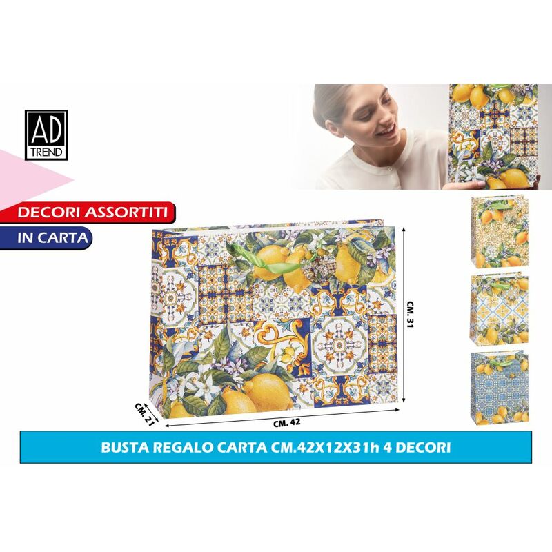 BUSTA REGALO CARTA CM.42X12X31h 4 DECORI