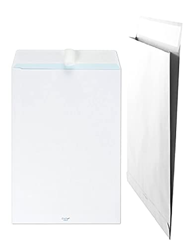 Busta a sacco con soffietti 23x33 - Colore bianco - Autoadesive - N. 20 Pezzi - Carta kraft bianca