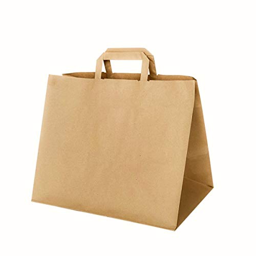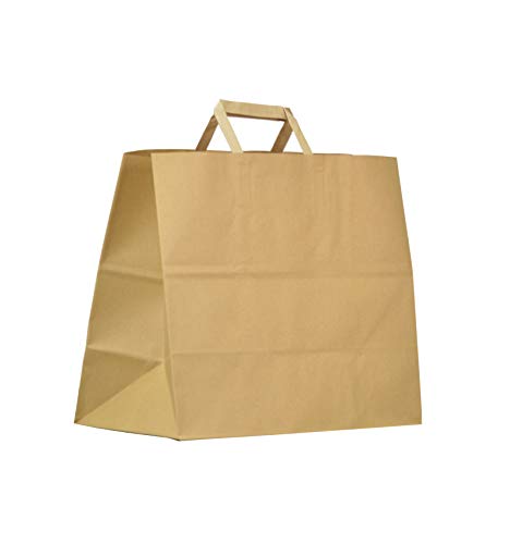 TAKE AWAY busta tipo shopper in carta color avana con maniglia piatta formato cm 27x17x29 - scatola da 300 pezzi - sacchetto ideale per ristoranti, asporto e delivery - massima resistenza