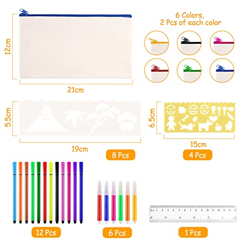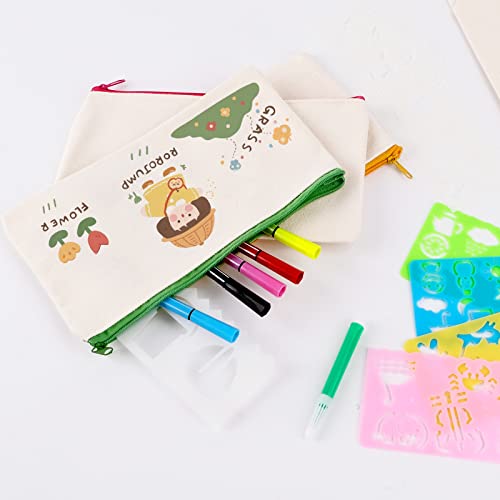 TUFA Busta Stoffa Piccola Vuota, 12 Pezzi Astuccio in Cotone con Cerniera, Sacchetti di Stoffa da Dipingere, DIY Astuccio Matite con 18 Penne + 1 Righello + 12 Stencil per Graffiti (21x12cm)
