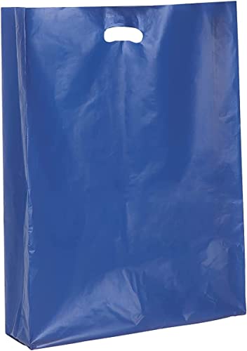 BUSTE 35+10x50 cm. BLU SHOPPER SACCHETTI FUSTELLA FAGIOLO ROBUSTO 60my con Manico a Soffietto (200)