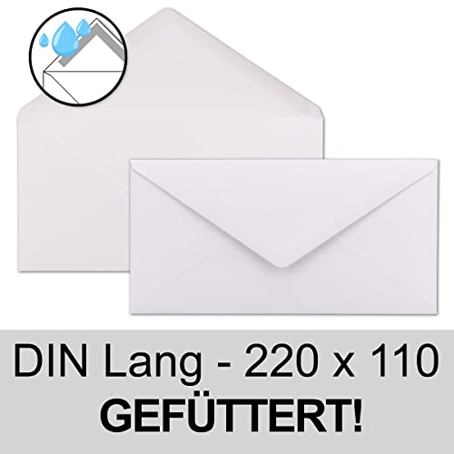 Buste Bianco - DIN lungo - Foderata Con Carta velina bianca - 100 G/M² - 220 X 110 mm - nassklebung 25 pezzi bianco