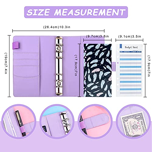 ►►Cash Envelope System - Il set di portafoglio di bilancio per buste di cassa include 12 fogli di bilancio della cassa con buste di diversi motivi, 24 adesivi e una copertina del taccuino con fogli mobili viola. Il sistema di busta della cassa è un set completo di organizzatore di pianificatore di budget di cassa.
