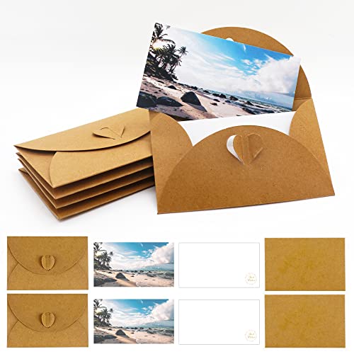 Mini buste in carta kraft, 30 biglietti con busta, per invito, biglietti di ringraziamento, biglietti di compleanno per (10 x 6 cm)