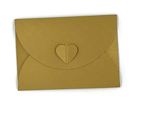 20 buste in cartoncino perlato con cuore, C6 = 162 x 114 mm, ideali ad esempio per inviti di matrimonio, per fidanzamento, come lettera d'amore 162 x 144 mm gold