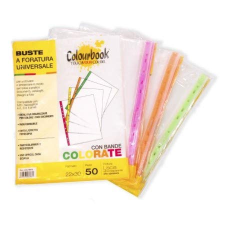 150 buste forate universali 22x30 con bande colorate ultra trasparenti spesse