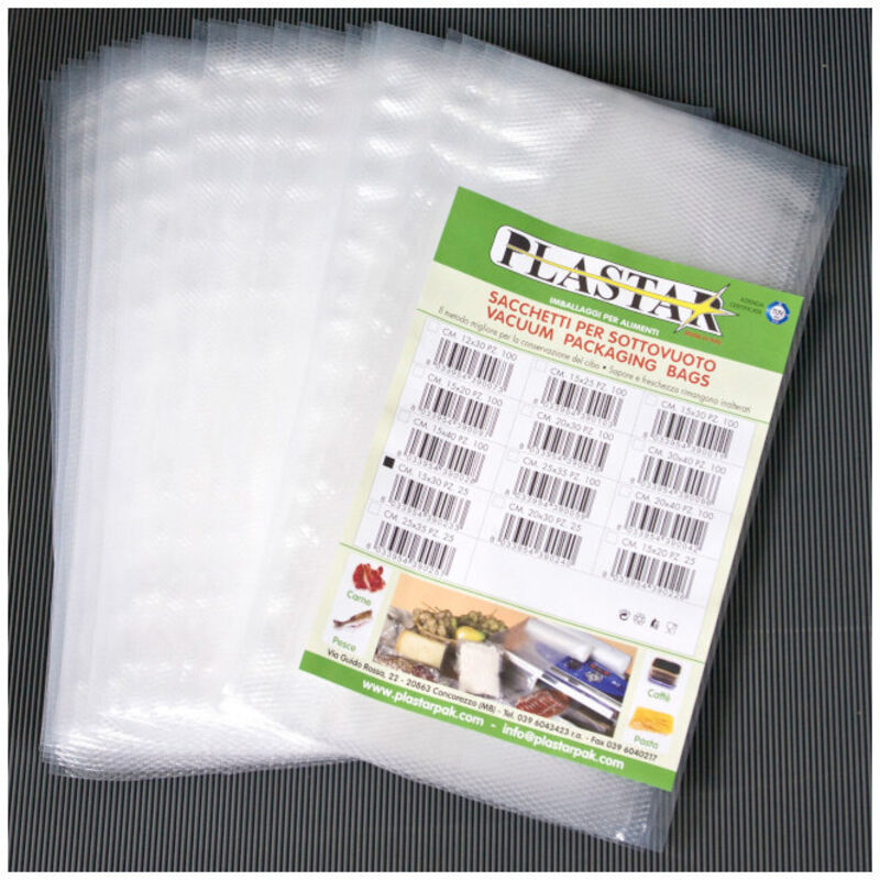 Goffrati, in nylon politene uso alimentare. Dimensioni cm 15x40 Confezione da 25 sacchetti