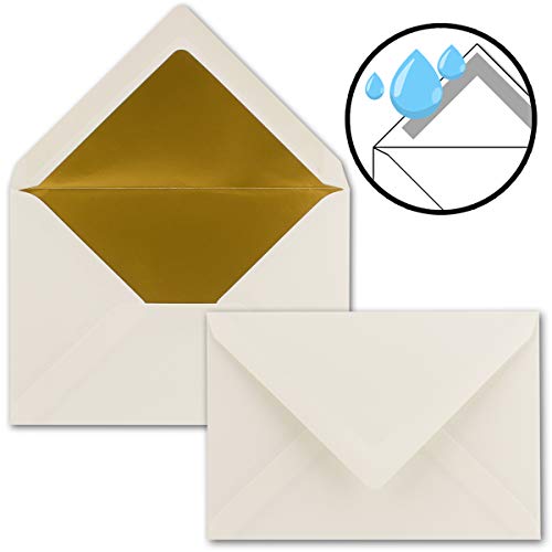 25 buste da lettera, formato DIN C6, 114 x 162 mm, 11,4 x 16,2 cm, chiusura da inumidire, superficie opaca e rivestimento metallizzato dorato, senza finestra, per inviti, colore: bianco naturale