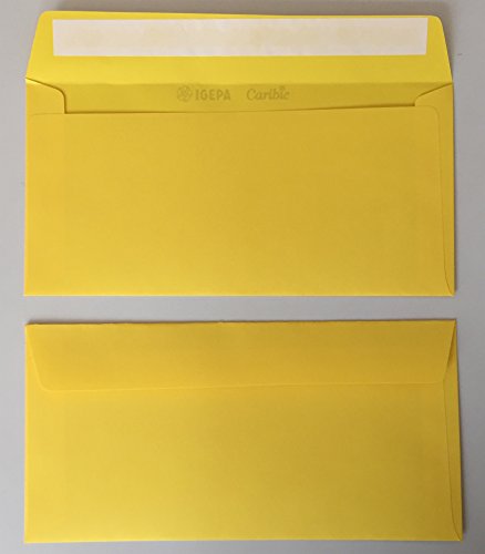 50 buste per lettera, giallo, zolfo giallo, 220 x 110 mm, chiusura autoadesiva