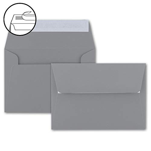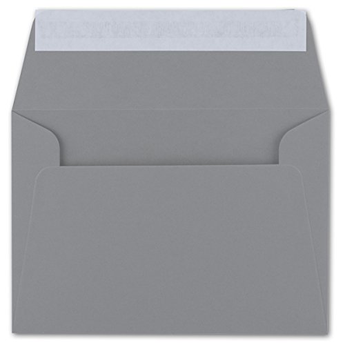 Buste di carta colore: grigio scuro - Grammatura: 120 g/m² - Formato: DIN B6 125 X 175 mm - con chiusura adesiva e linguetta, senza finestra
