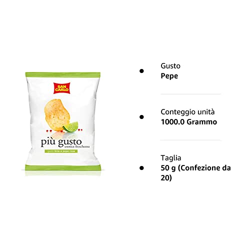 20 buste patatine san carlo piu' gusto lime e pepe rosa 50 gr crisps chips snack