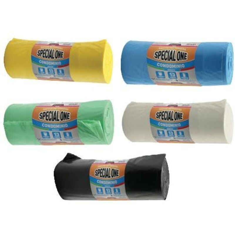 In polietilene per raccolta differenziata, 110 Lt., 70x110 cm., extra pesante. Confezioni da 13 pezzi = kg.1, spessore micron MY 60 Nero