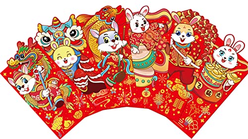 6 buste rosse cinesi Hongbao 2023 Anno dell'anno del coniglio pacchetto rosso festa di primavera soldi fortunati pacchetto dolce per matrimonio Capodanno, (6,4 x 3,5 pollici) (B)