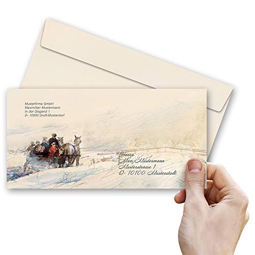 10 buste (senza finestra) Stagioni - Inverno, CARROZZA NEI BOSCHI Variante A DIN LONG (220x110 mm) | Paper-Media