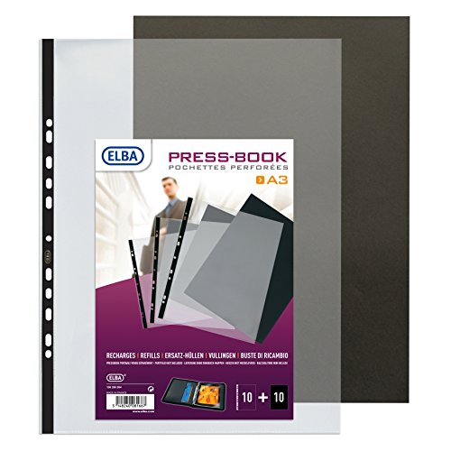 Elba - Buste trasparenti con cartoncino bristol, per cartella espositiva, formato A3, 10 pezzi