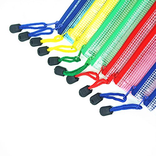 Bustina multiuso per documenti, in plastica, design a retina, sacchetto con chiusura lampo, impermeabile, bustina per conservare oggetti e cosmetici, con zip, A4, 10 pezzi, diversi colori