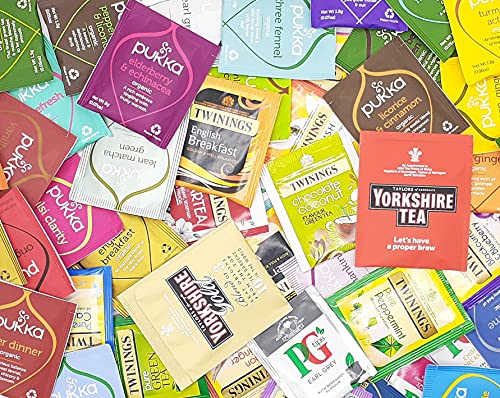 Varietà assoluta garantita: tutte le buste da tè nella confezione sono diverse. Non sono incluse due le stesse buste da tè. La selezione delle nostre varietà classiche ti darà sicuramente la tazza di tè perfetta, qualunque sia il tuo umore