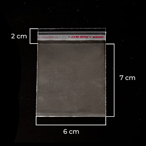 CONFEZIONE: 300 buste in cellophane 7x6 sigillate sui lati, con chiusura adesiva e senza cuciture o fori.
