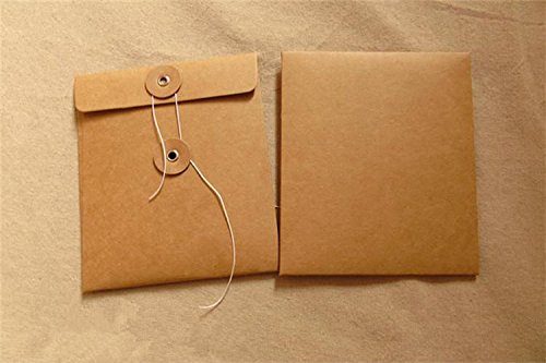 100 bustine custodia archivio per CD/DVD/BLU RAY In carta Kraft modello chiusura con corda di cotone