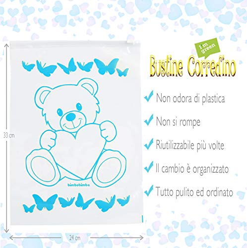 ♥MIGLIOR MATERIALE - Le bustine sono prodotte con il miglior materiale presente sul mercato, inodore, lucente e resistente, con la possibilità di riutilizzare anche come porta pannolini o cosmesi anche dopo, per le passeggiate con il passeggino, utilissima è la chiusura con il cursore. Sono 100% Made in Italy dal disegno alla produzione.