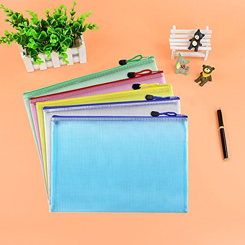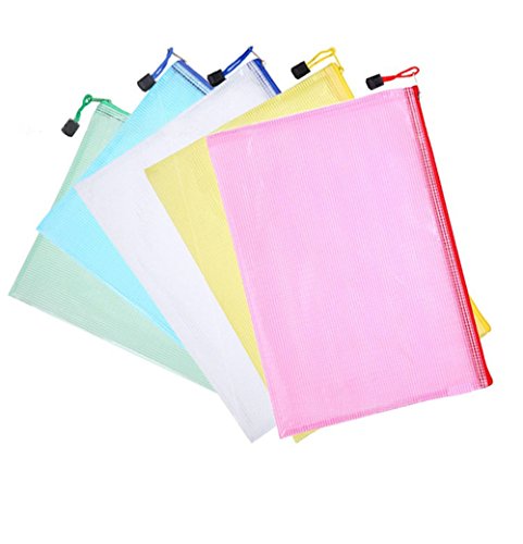 Bustine portadocumenti a rete con zip, formato A4, per cosmetici, articoli di cancelleria, accessori da viaggio, 5 pezzi