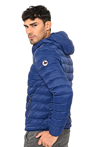 Hot Buttered Giacca Piumino, Imbottita con 100% Vera Piuma D'Oca 160 GR, Cappuccio e Patch Logo sulla Manica, Modello Galaxy, Colore Blu Royal