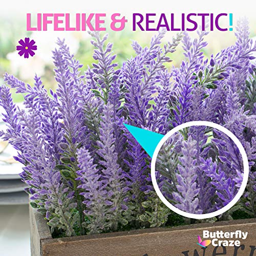 COLORE ED ELEGANZA: Queste vivaci piante di lavanda artificiale viola e verde Butterfly Craze sono realizzate con materiali di qualità, costruite per durare e sono ancora più sbalorditive delle piante grasse artificiali. Perfette per aggiungere un tocco di natura alla tua casa, ufficio o spazio per eventi, queste piante illumineranno