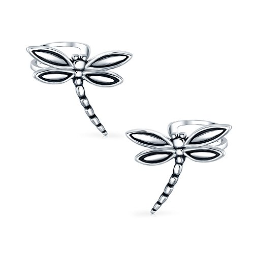 Infondere un tocco fresco e primaverile nel tuo look con un pizzico di capriccio giocoso con questi stravaganti orecchini per polsini auricolari in argento 925 per orecchie non forate. Evidenziato da un dolce motivo libellula con accenti dettagliati elaborati e ossidati.