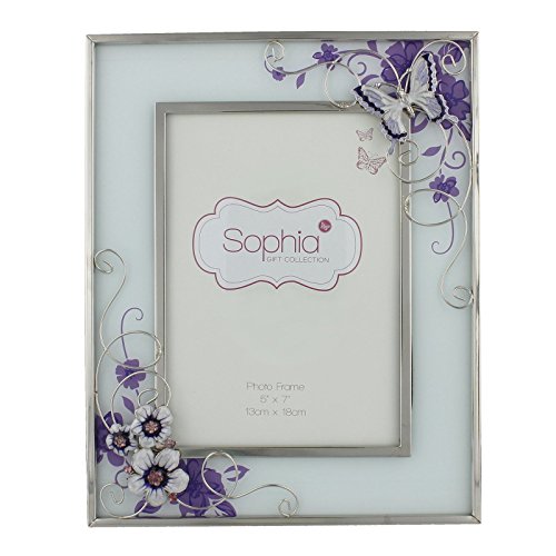 Butterfly & Flowers Cream Glass Photo Frame 5"x7"